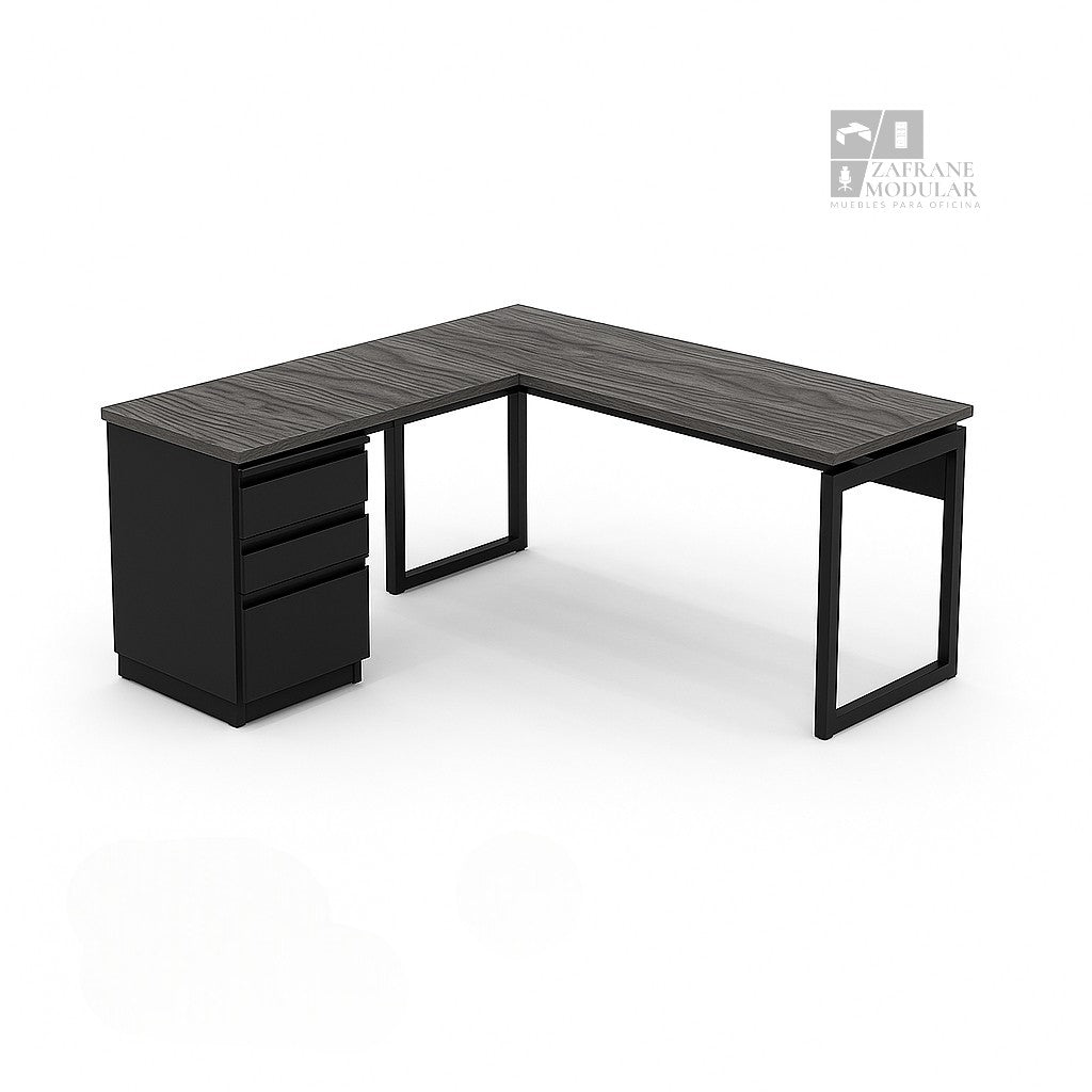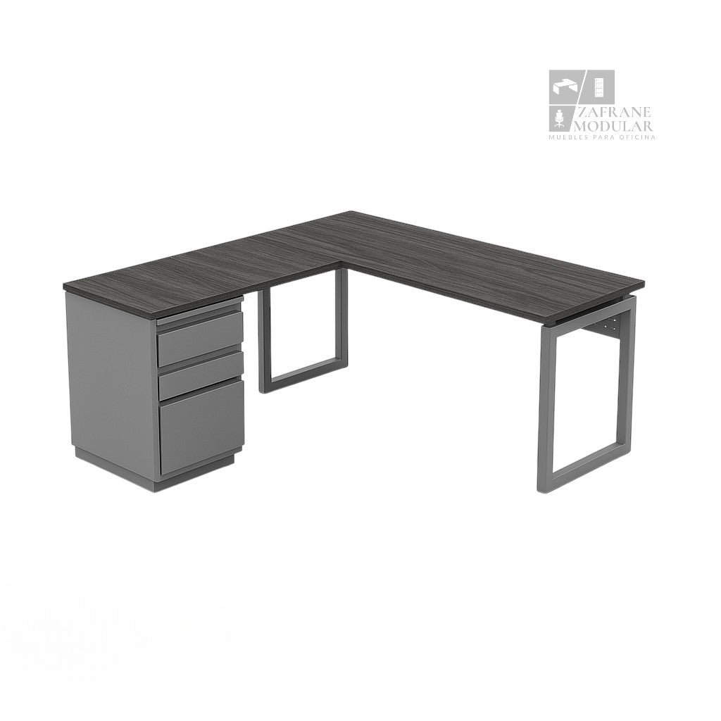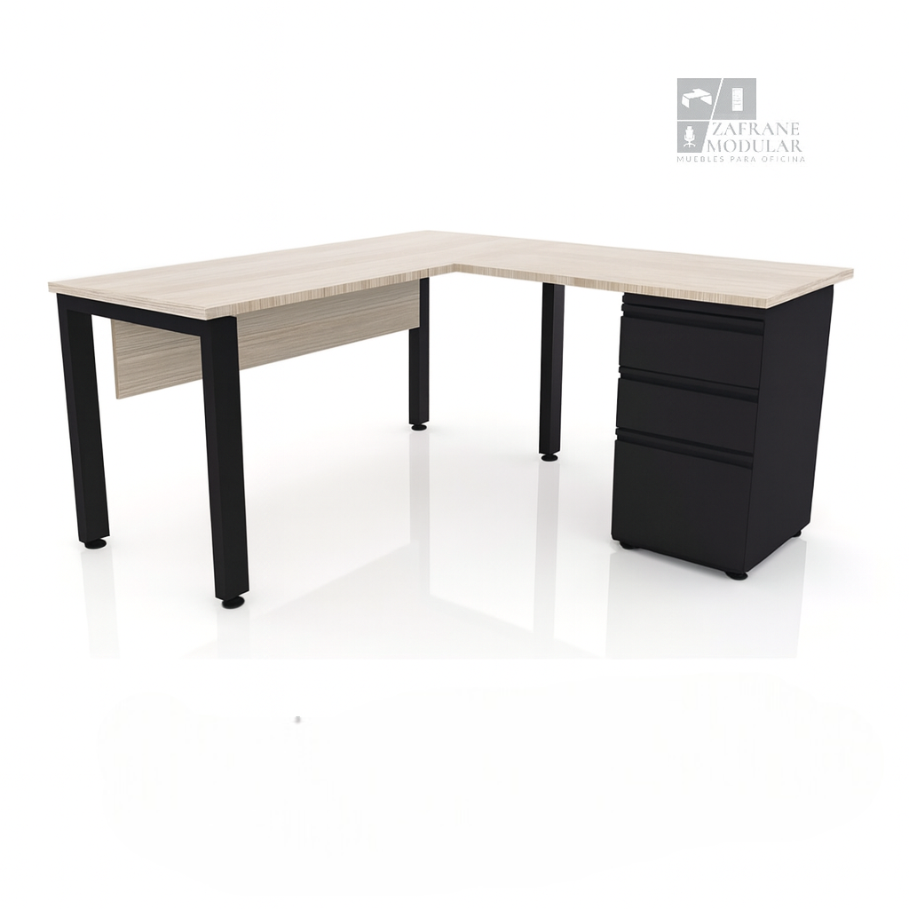 PRÁCTICO Y VERSÁTIL: Un escritorio en “L” con estructura metálica cuadrada y falda en madera, concebido para ofrecer privacidad, estabilidad y elegancia en un solo diseño....