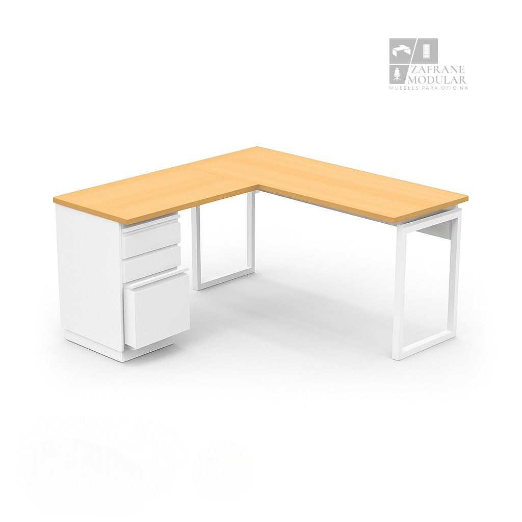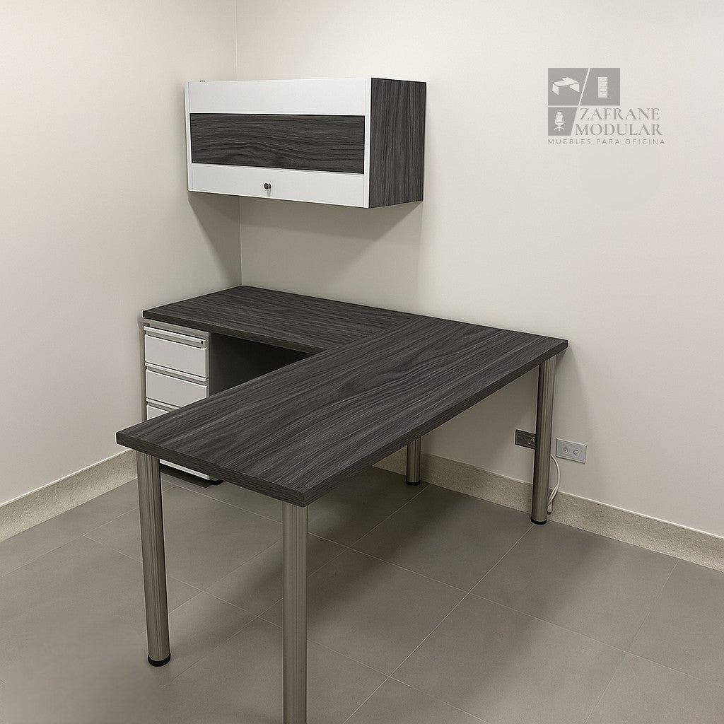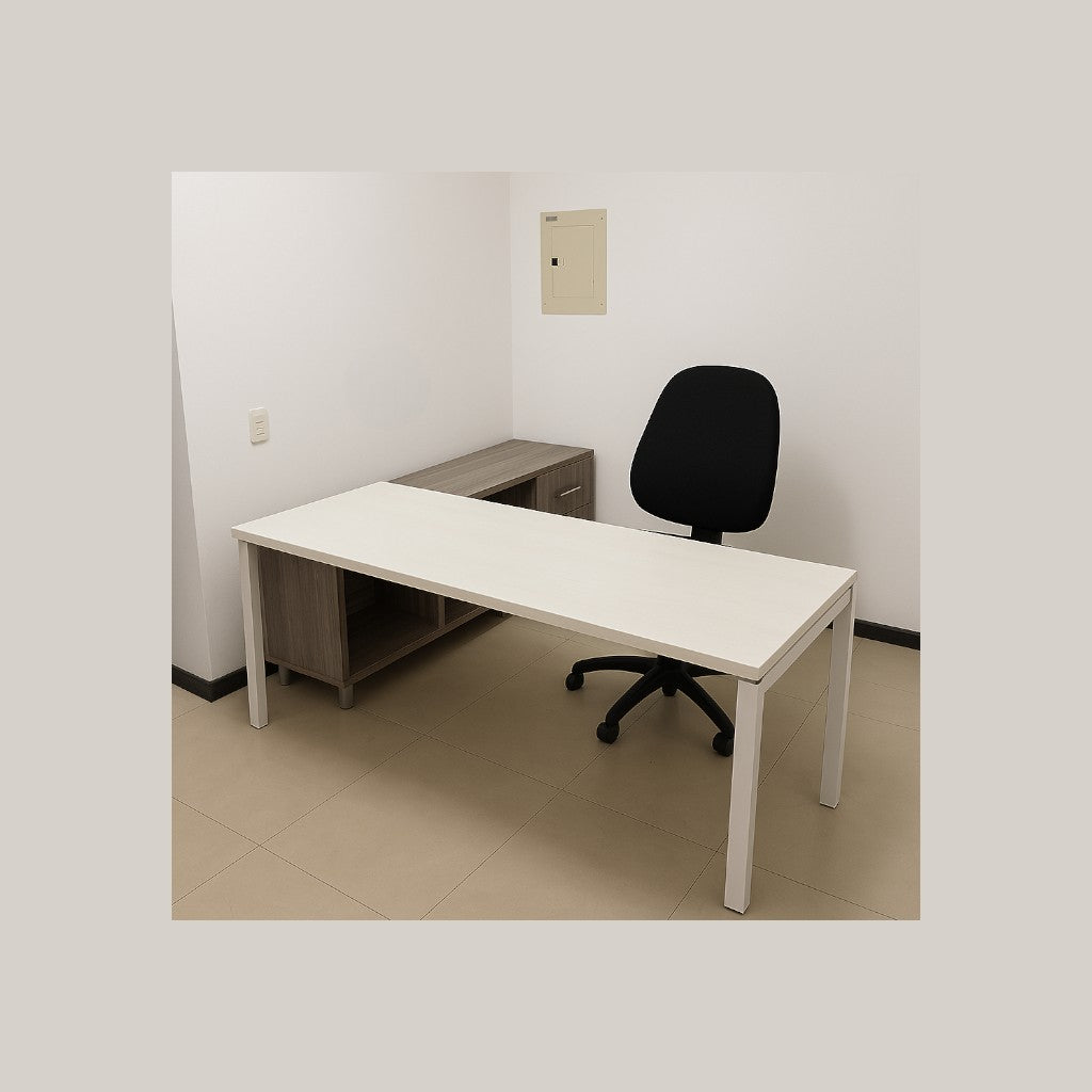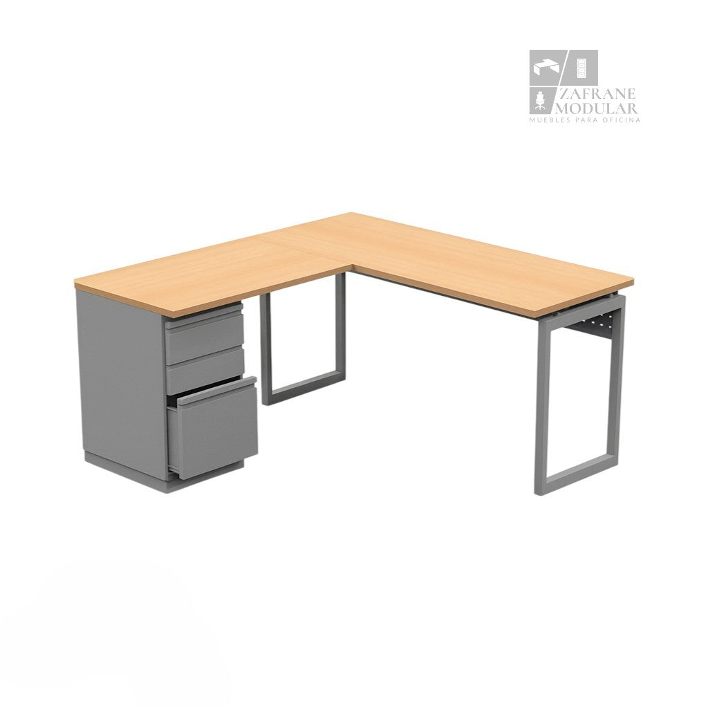 PRÁCTICO Y VERSÁTIL: Un escritorio en “L” con estructura metálica cuadrada y falda en madera, concebido para ofrecer privacidad, estabilidad y elegancia en un solo diseño....