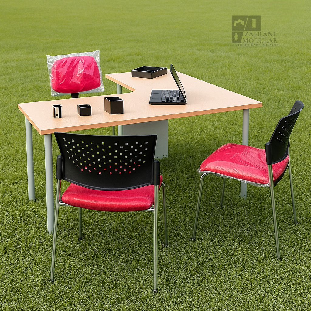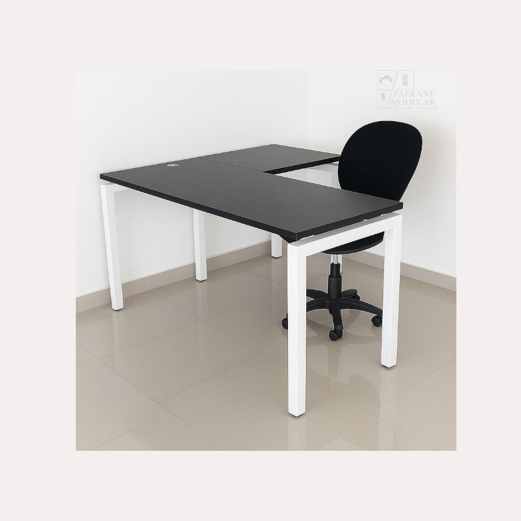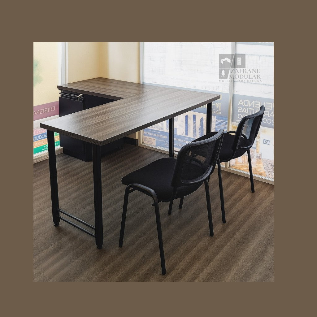 PRÁCTICO Y VERSÁTIL: Escritorio en “L” con soporte metálico en forma de “U”, diseñado para proyectar elegancia, solidez y funcionalidad. Su estructura robusta combina líneas rectas...